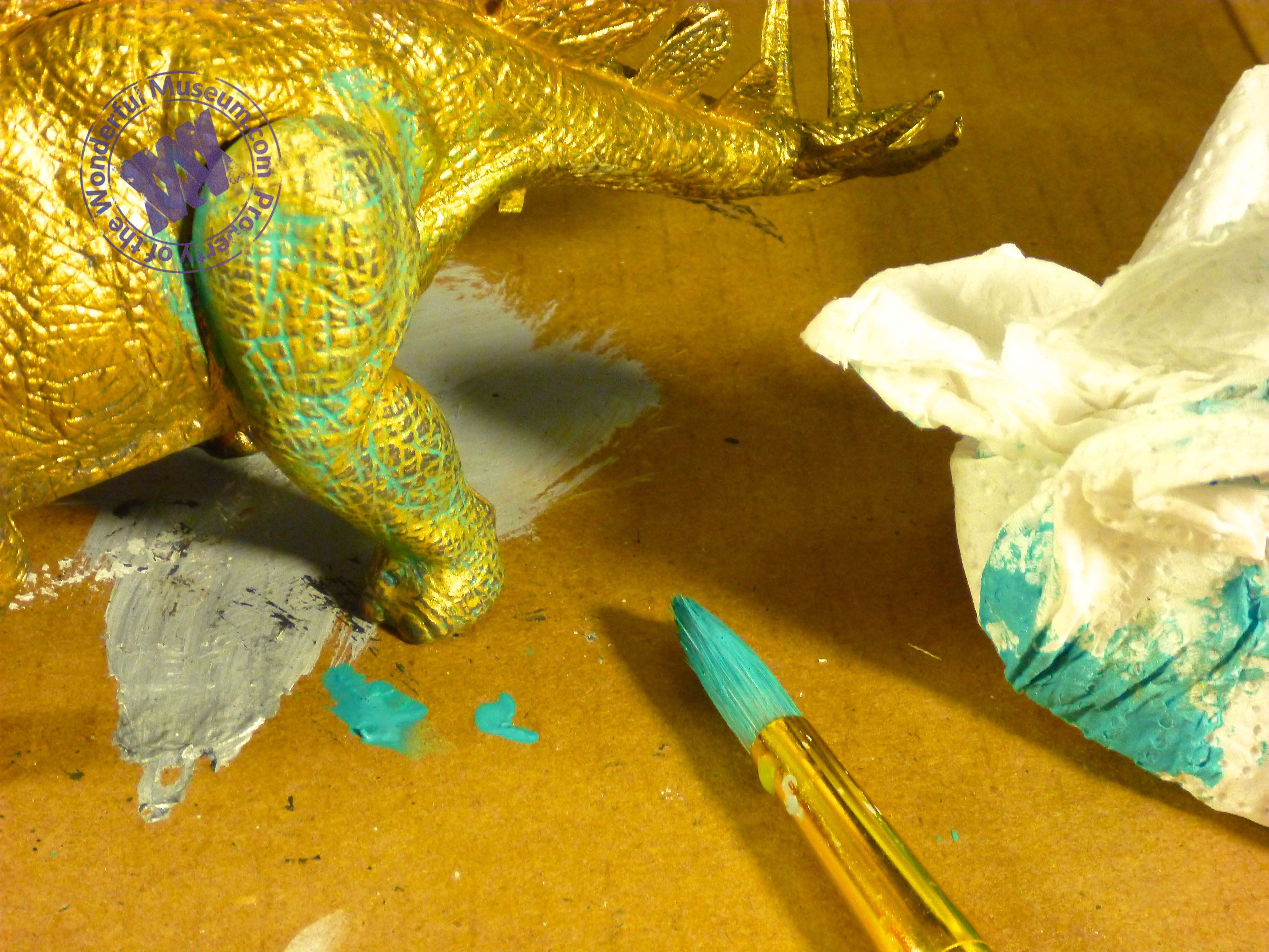 Do you need some statues to stand outside your museum? This tutorial will teach you how to paint something so that it looks like a real bronze statue. Museums often have large statues of famous people or animals like dinosaurs and bears outside their front doors. These statues can pay tribute to the museum’s founder, show tourists what kind of specimens are in the museum, or get visitors excited before they enter. Large statues are often made of metals like bronze, copper, or brass because these metals are so durable. Many hands on models inside museums are also made of bronze so that millions of visitors can touch an object without destroying it. When they are outside and exposed to weather, metal statues slowly form a patina, or a thin layer, of blueish green color called verdigris. This is why the Statue of Liberty is green. Can you imagine how awesome it must have looked when it was originally built in shiny copper before it was weathered?